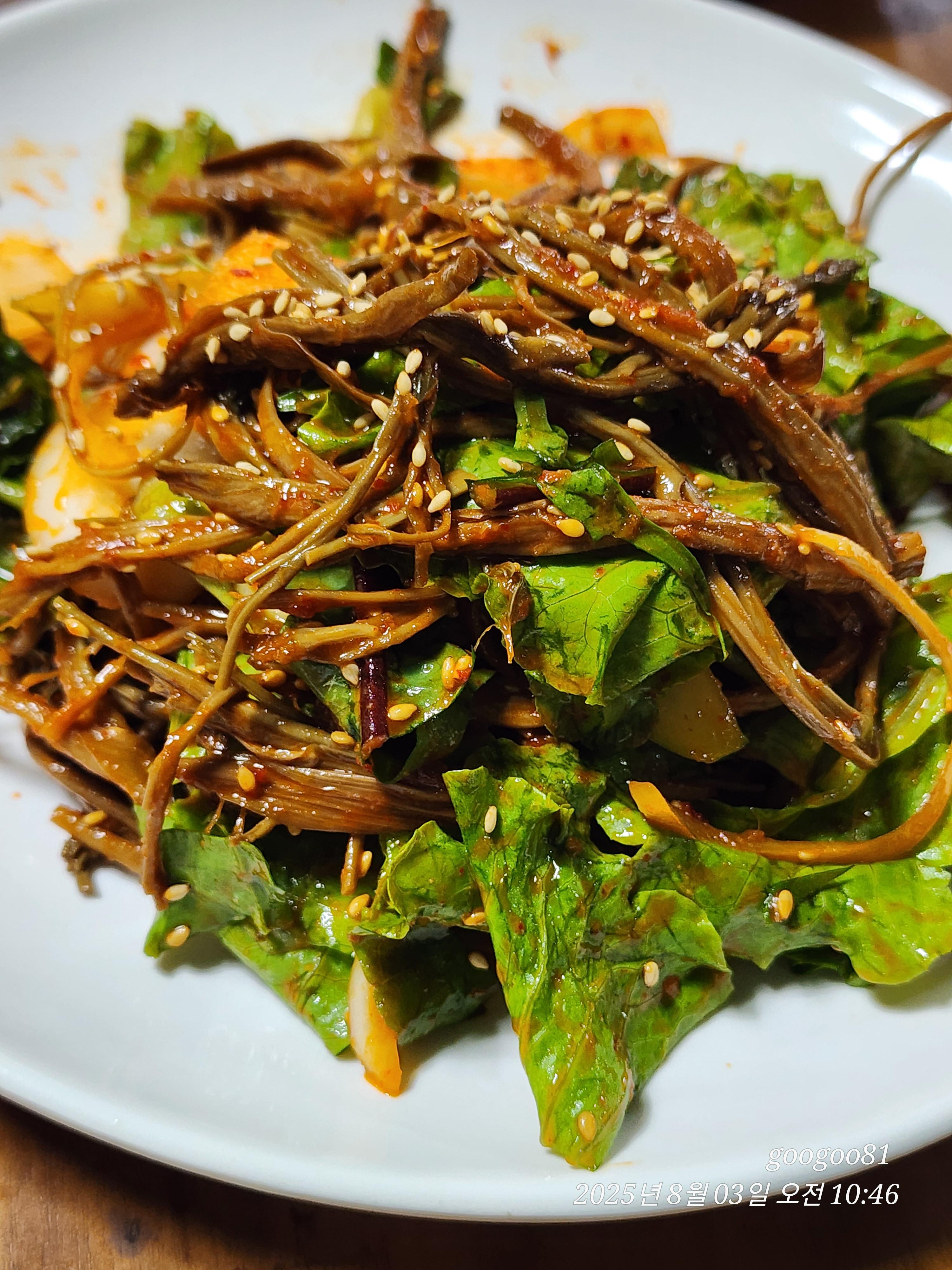 울릉도에서 나는 싱싱한 산나물들이 가득 들어있는 삼나물무침, 더덕무침 있었어요. 정말 맛있었어요. 건강해지는 맛이었습니다. 👍