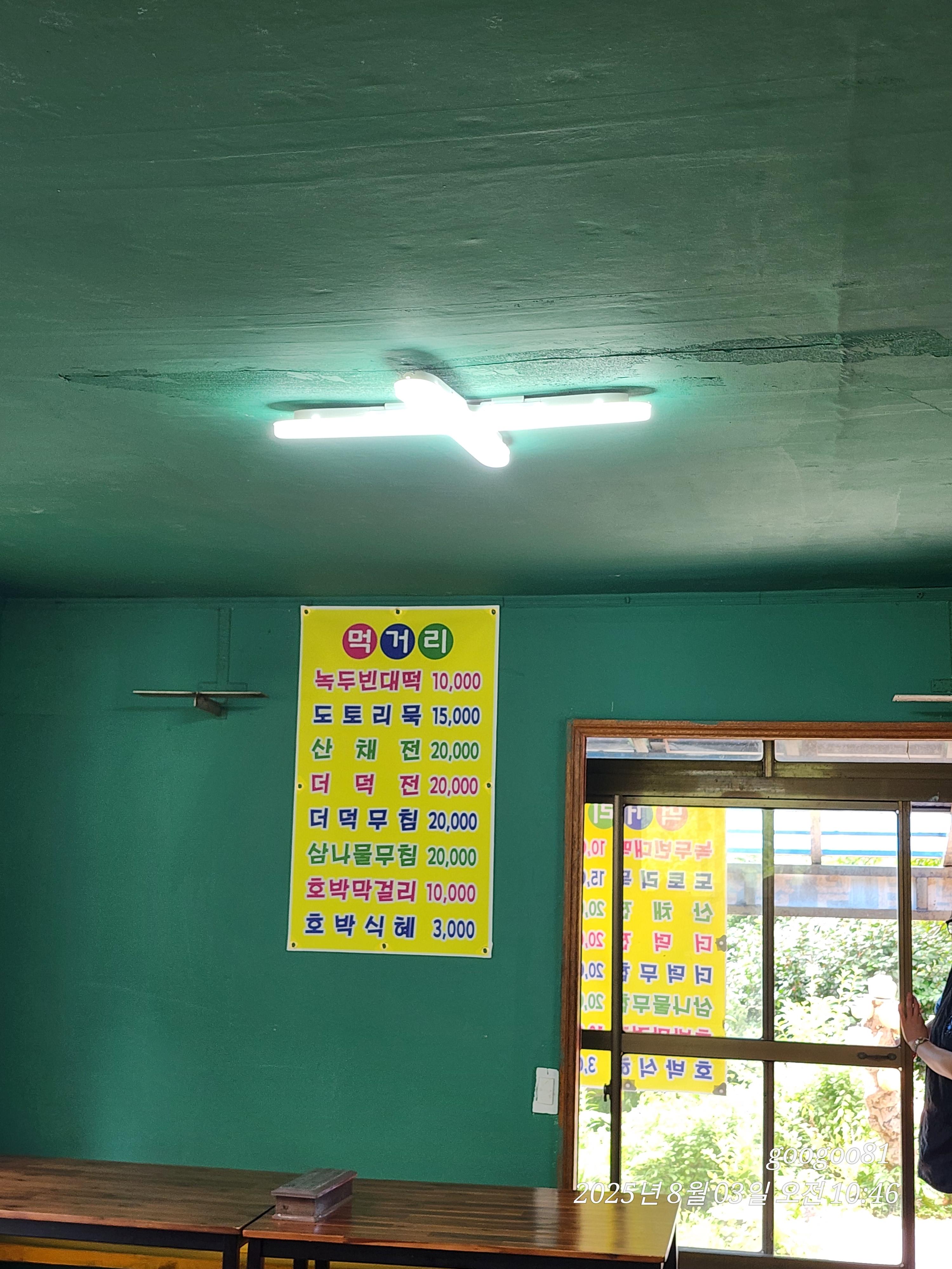 봉래폭포를 구경하고 내려오는 길, 허기진 배를 채우러 식당에 들렀어요. 울릉도의 유명한 먹거리인 산채비빔밥과 호박막걸리를 파는 곳이었죠.