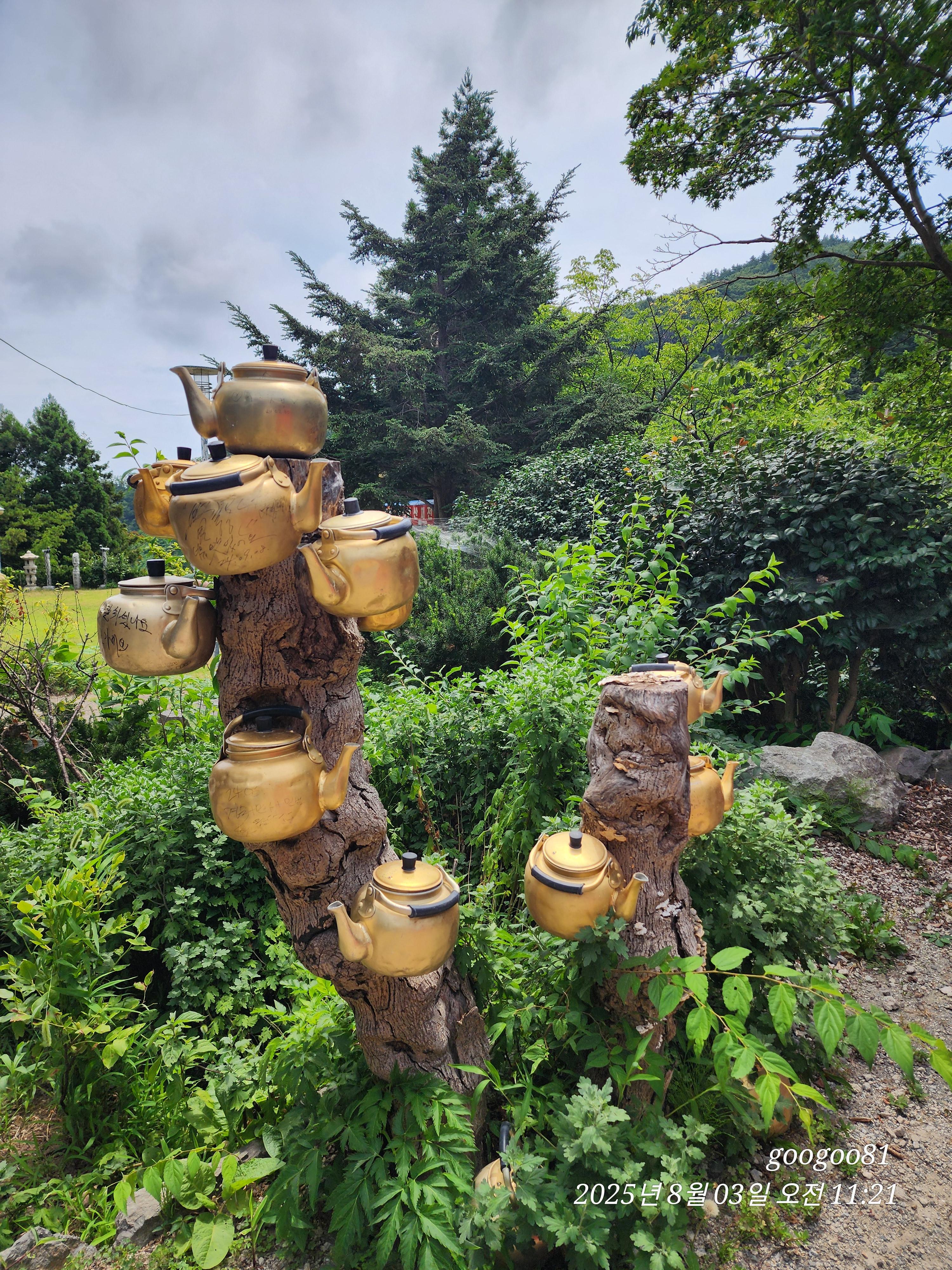 식당에 재미있는 조형물들도 많았어요. 낡은 주전자로 만든 나무 조형물이 인상 깊었습니다.