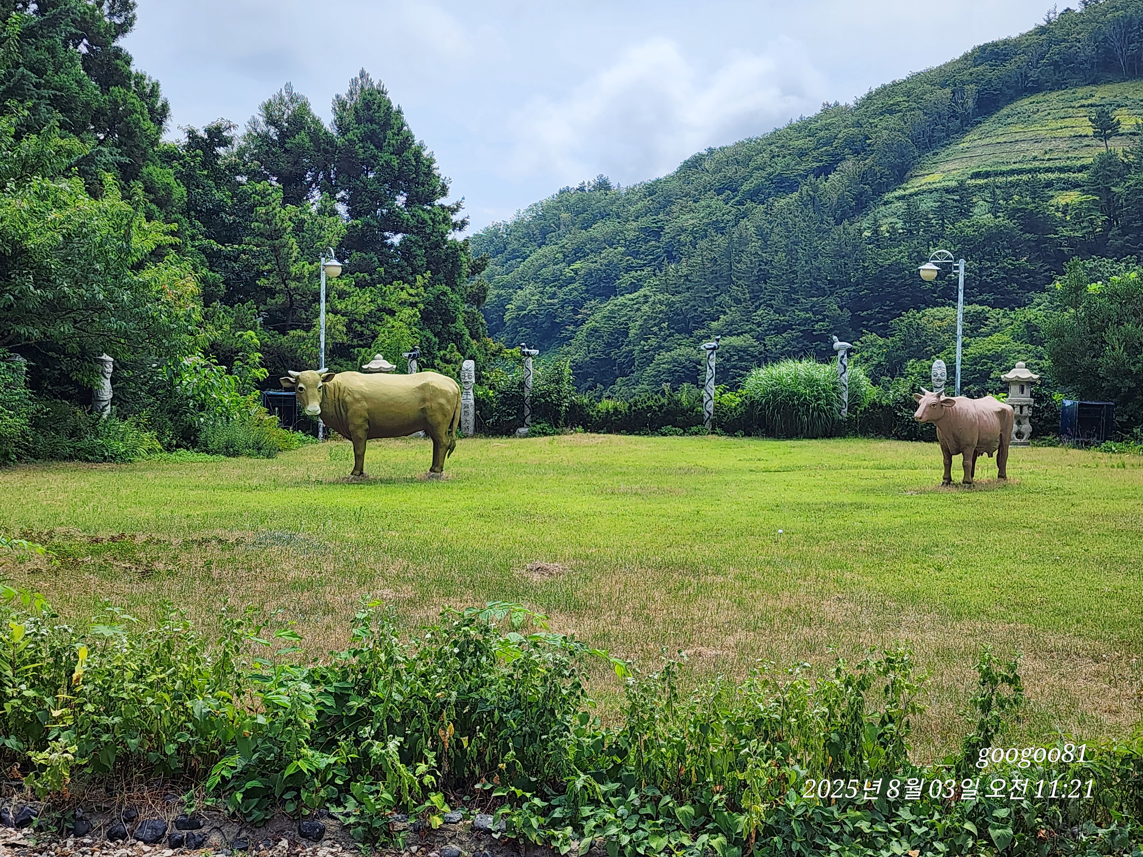 귀여운 소 조형물이 있는 잔디밭도 있었어요. 푸른 자연 속에 어우러진 조형물들이 왠지 모르게 평화로운 느낌을 주었습니다.