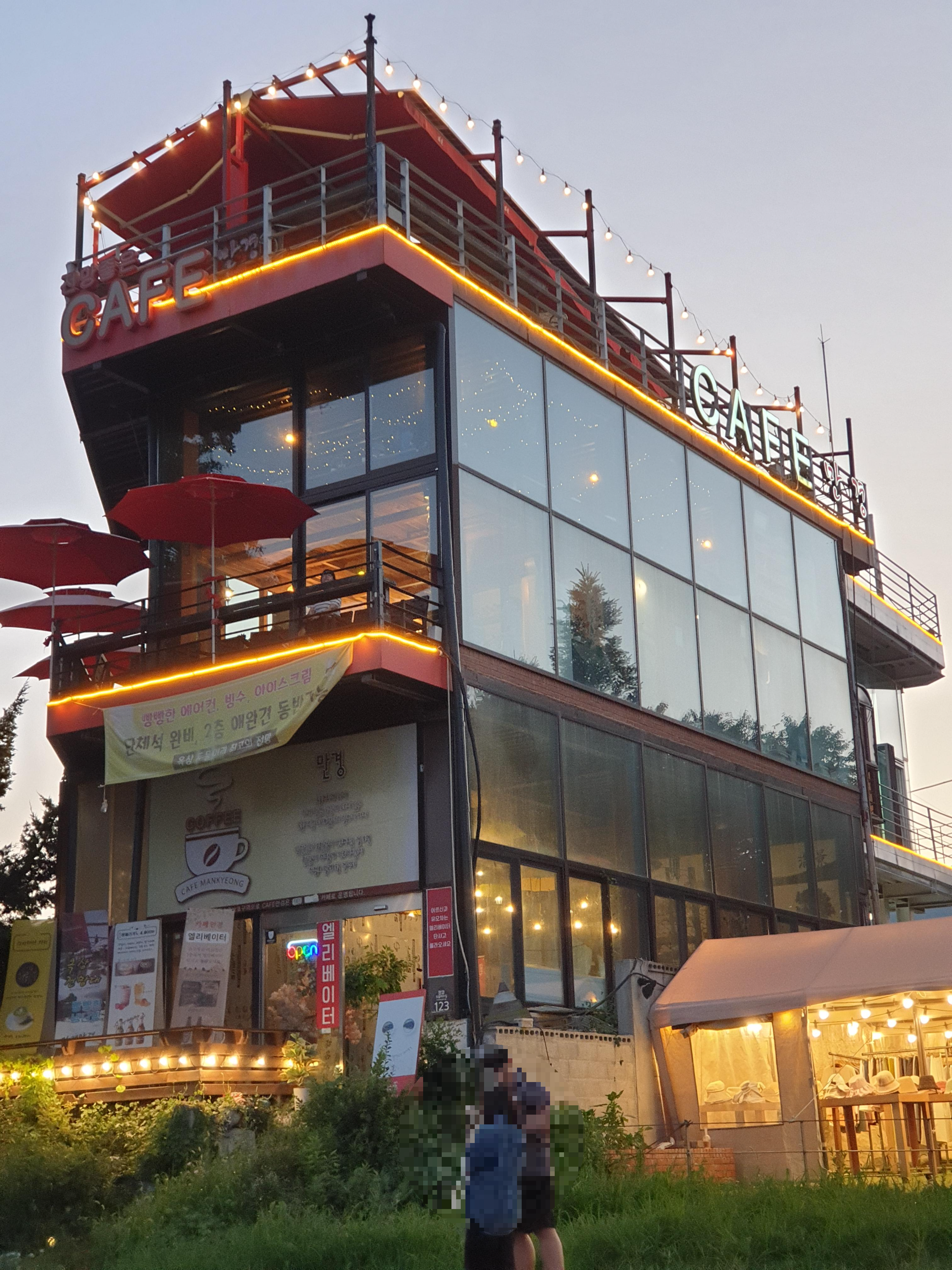 두물머리에 도착해서 저녁 노을을 감상하기 좋은 3층짜리 카페에 들어왔어요.