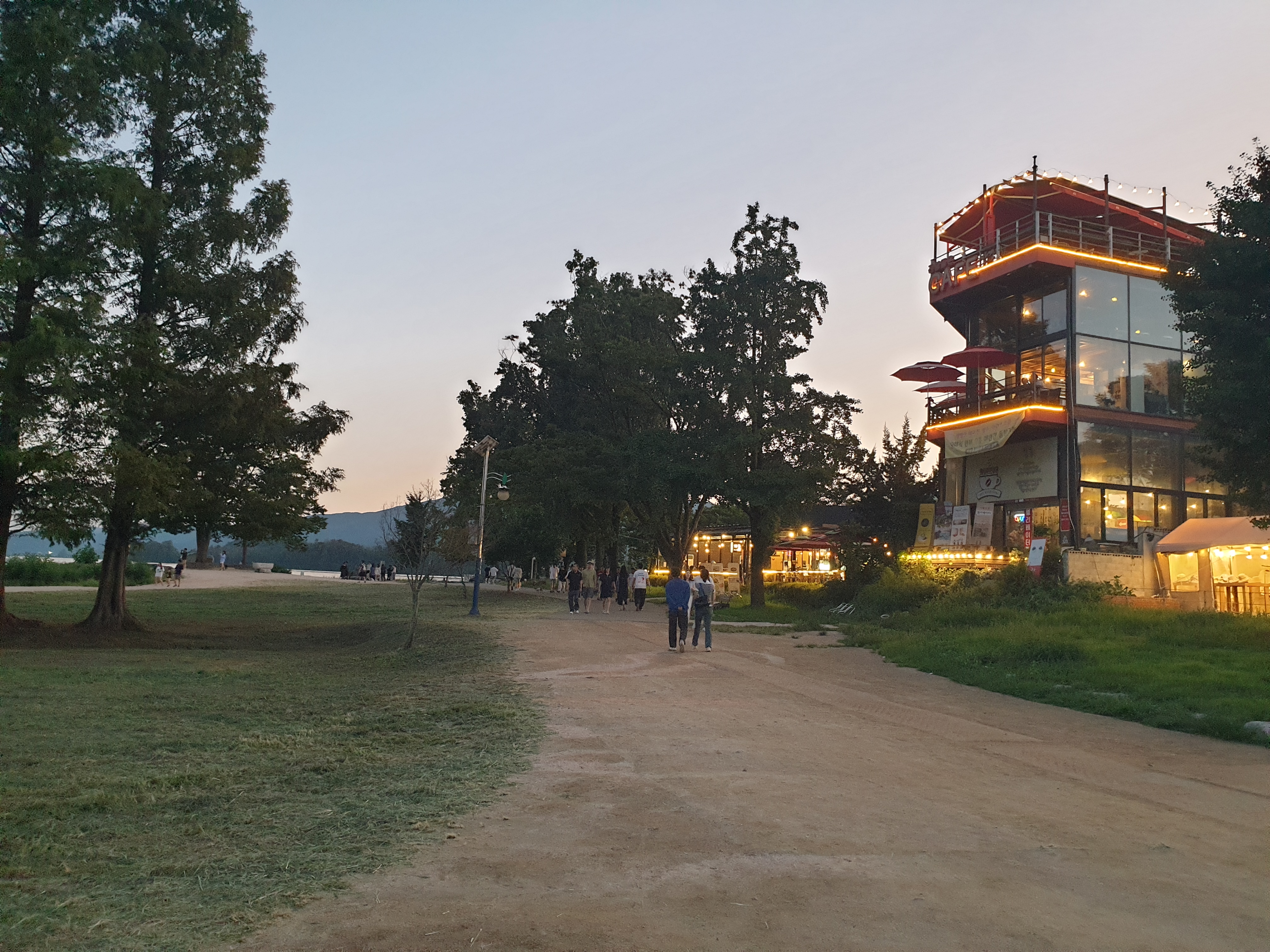 어둠이 깔리기 시작하자 카페에 불이 들어와 더욱 낭만적인 분위기를 연출했습니다. 데이트하기에도 딱 좋은 곳이었어요. 👍
