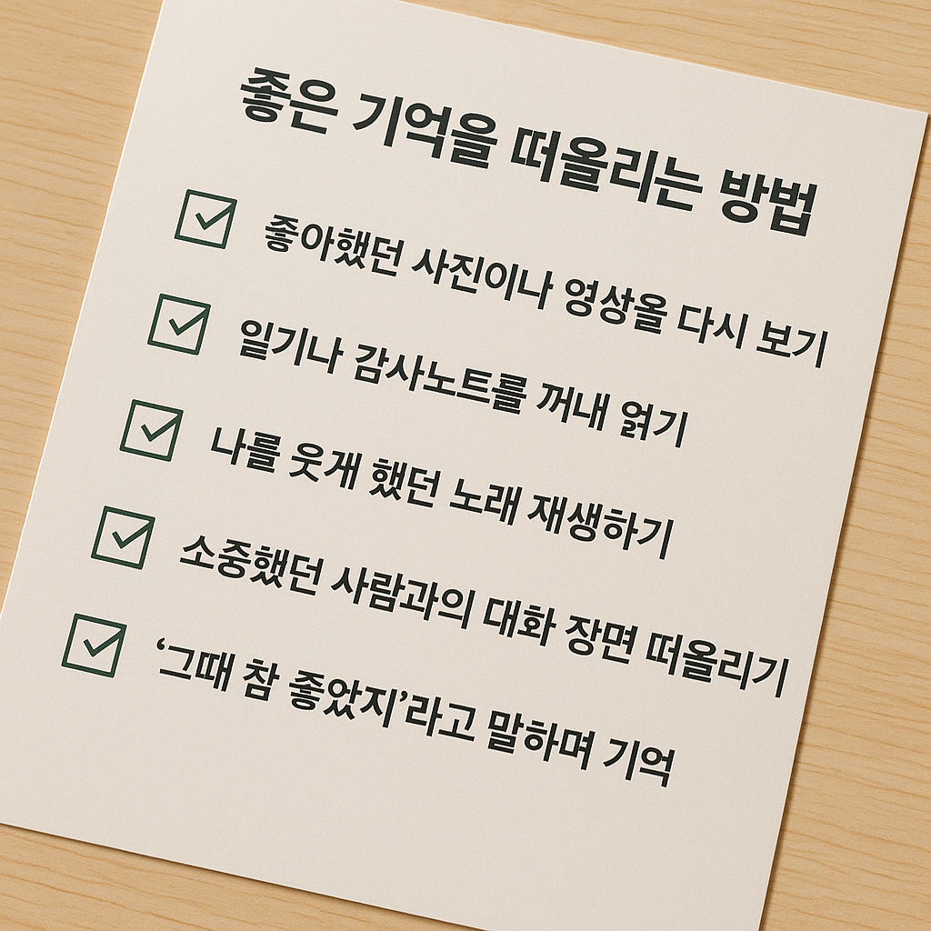 좋은 기억은 단순한 회상이 아니라, 현재에 긍정적 감정을 불어넣는 에너지입니다.