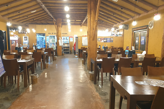 나무 기둥이 주는 따뜻한 느낌 덕분에 식사 자리가 더욱 아늑하게 느껴졌어요.