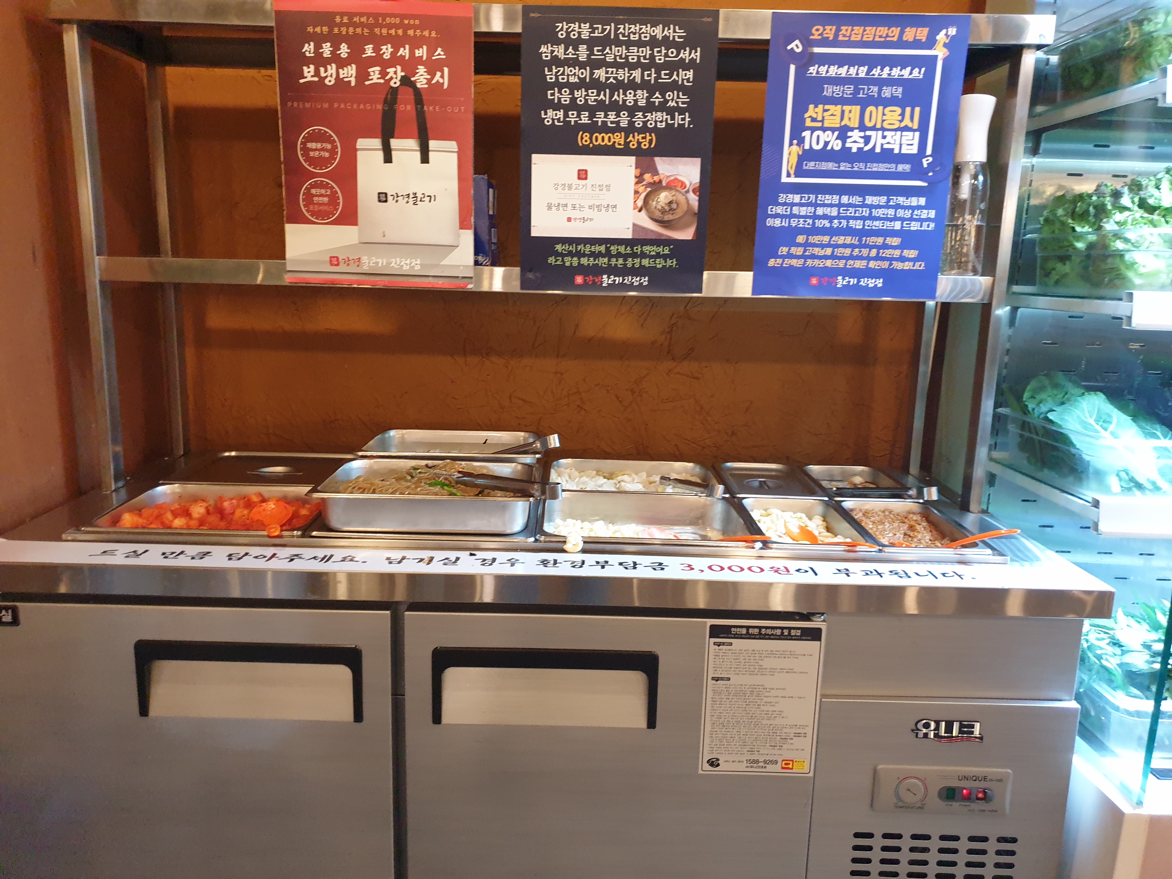 이곳의 하이라이트는 바로 무한 리필 쌈 채소 바입니다!
