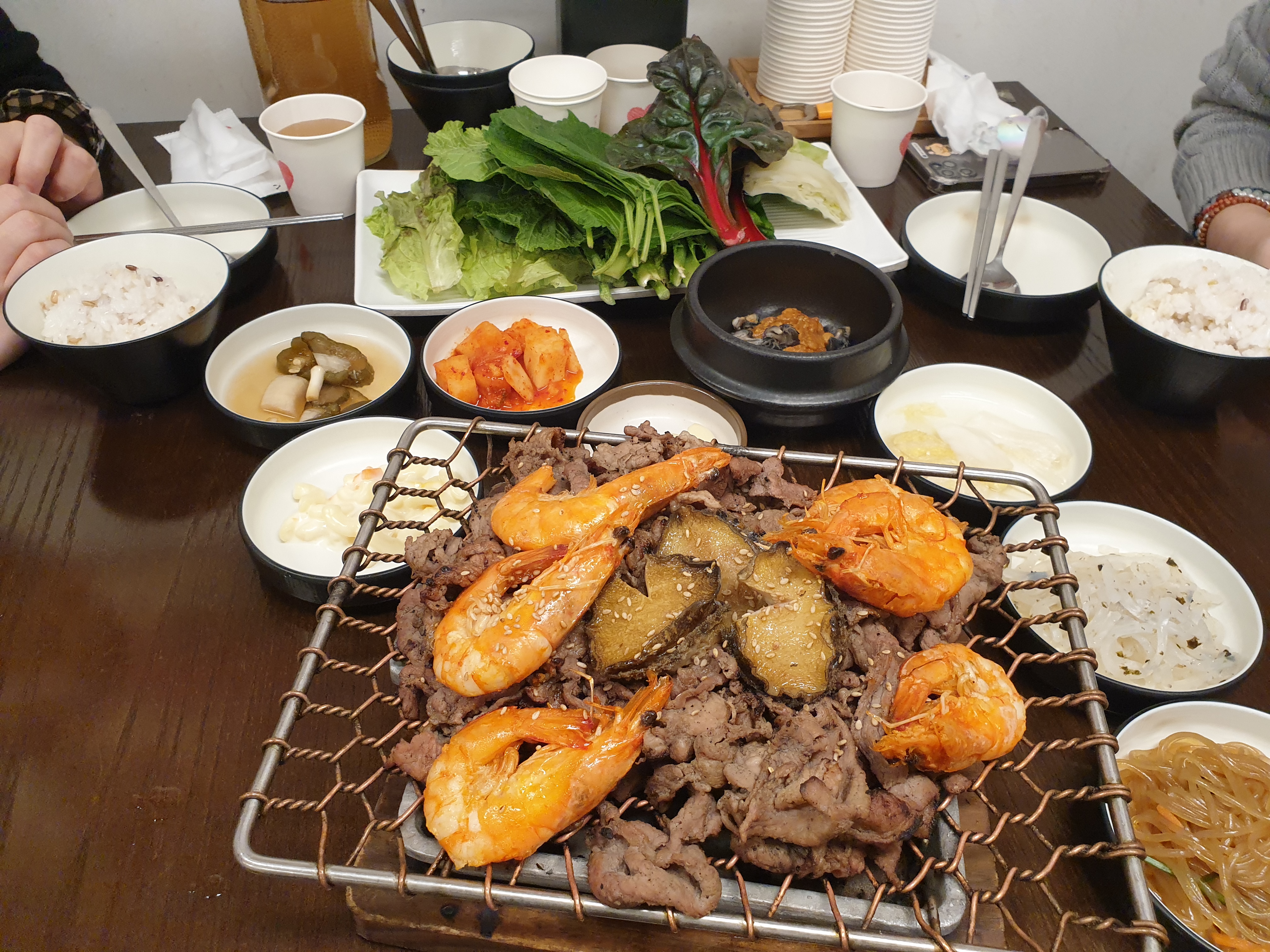 🦐 달짝지근한 고기의 맛과 해산물의 감칠맛이 어우러져 입안 가득 행복이 퍼졌습니다. 싱싱한 쌈 채소에 고기 한 점 올리고 크게 한 쌈 싸 먹으니, 세상 부러울 것이 없더군요.