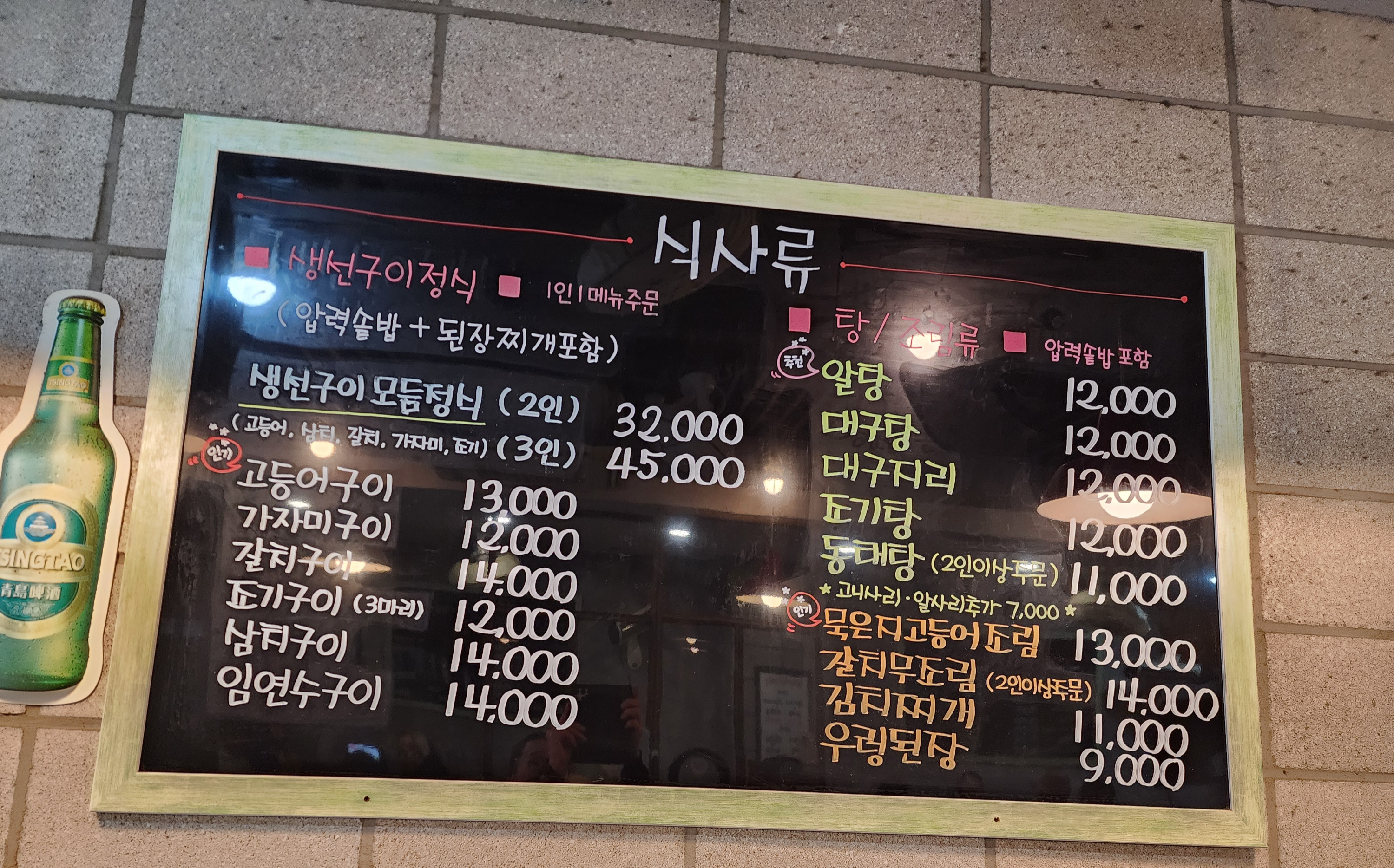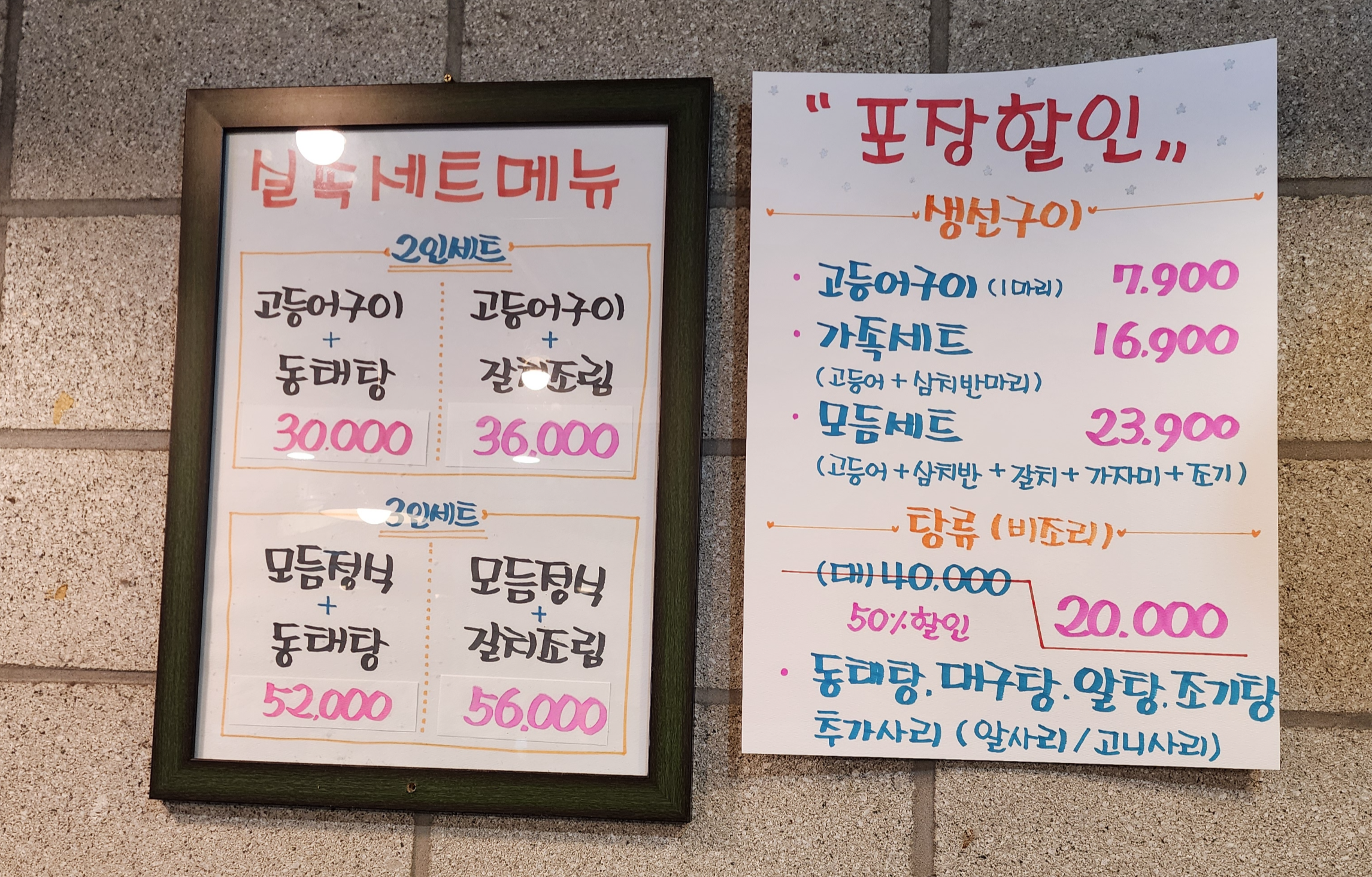 메뉴판을 보니 고등어, 갈치, 임연수 등 다양한 생선구이부터 알탕, 동태탕 같은 탕류까지 바다의 맛이 총출동했습니다. 가성비 좋은 실속 세트 메뉴도 있어서 여럿이 와서 다양하게 즐기기에 안성맞춤이었습니다.