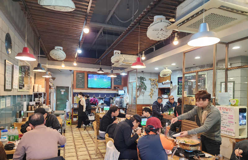 문을 열고 들어서니 이미 많은 손님으로 북적이고 있었습니다. 따뜻한 조명 아래 옹기종기 모여 앉아 가족, 친구, 연인, 부부들이 식사를 즐기는 모습에서 정겨움이 물씬 풍깁니다. 활기찬 분위기 덕분에 식욕이 더욱 돋우어지는 기분이었어요.
